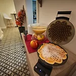 The Suite Home Prague offers rooms with a mini-kitchen and a dining area featuring an iron with ironing board and climate control, along with complimentary Wi-Fi and a flat-screen TV with satellite channels. Bathroom amenities include a bidet, a separate toilet, and a shower, as well as comforts such as a hair dryer and dressing gowns. Guests can also enjoy patio views.